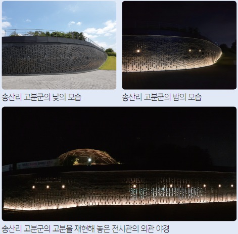무령왕릉은 송산리 고분군에 포함되어 있다. 현재는 실물로 볼 수는 없지만 내부 모습을 재현해놓은 것을 볼 수 있다. 주변의 자연과 공원이 연계되어 새롭게 단장된 깔끔한 주변의 모습이다. 평일 낮이라 그런지 찾는 이들은 없었다. 저녁에는 시원한 바람과 함께 은은한 야경으로 무령왕릉이 친근하게 다가오게 하는 느낌이 들었다. 잠시 쉬어가도 좋을 듯한 저녁의 장소이다.