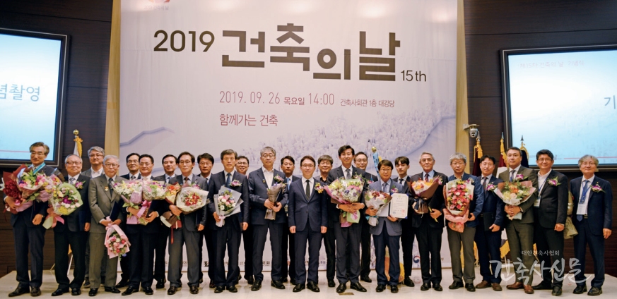 한국건축단체연합(대한건축사협회, 대한건축학회, 한국건축가협회)이 주최하고, 국가건축정책위원회, 국토교통부, 문화체육관광부가 후원하는 ‘2019 건축의 날’ 기념식이 9월 26일 건축사회관 1층 대강당에서 열렸다.