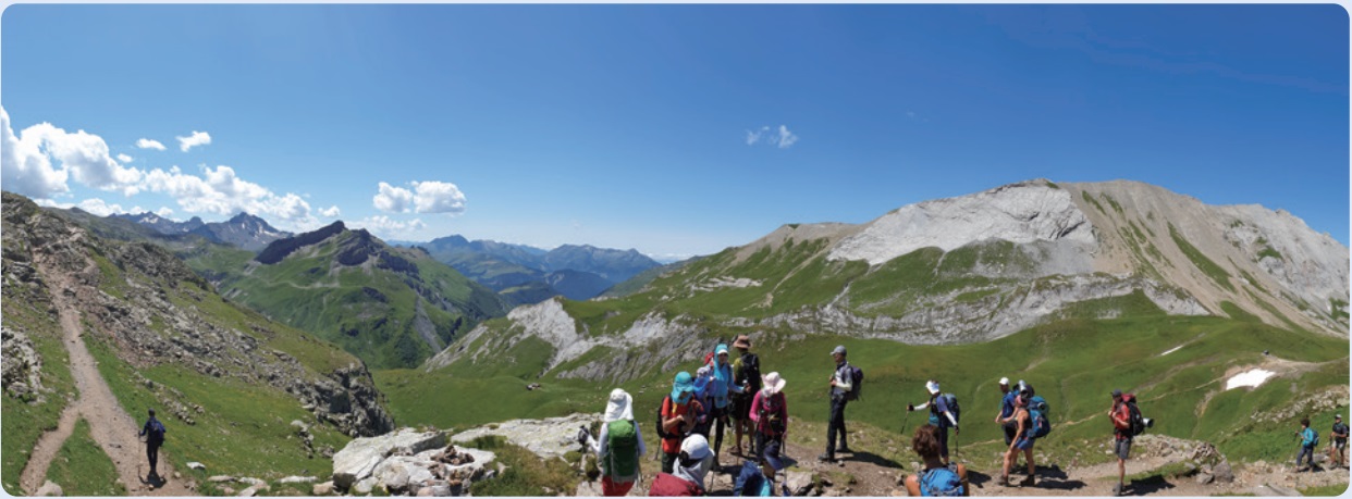 8시에 전체 팀 출발이 시작됐다. 개별적 출발이기도 하였고, 우리 팀은 후미에서 환상의 야생화와 알프스를 느끼면서 천천히 산행했다. 한국에서 산행하듯 앞만 보고 가는 트레킹보다는 눈으로 즐기는 사치를 느끼고 싶어서였다. 출발 후 2시간 30분이 되는 10시 30에 세인드 고개에 도착하고 더 가서 산장에서 식사를 한다. 세인드 고개는 2,600미터 높이의 고개이며 이탈리아에서 바라다 보이는 몽블랑이 보이는 곳이다. 산장에서 안 되던 로밍도 이곳에서는 가능했다.