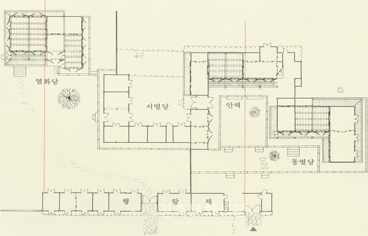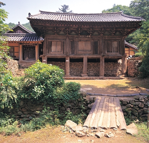 건축도 마찬가지이다. 안채와 사랑채, 대문간이 죽 일직선으로 늘어서 있는, 즉 1개의 축만 가진 공간 구성이 가장 단순하고 일반적이다. 대문을 지나면 사랑채가 나오고 사랑채를 돌면 안채가 앉혀지는 형상이다. 권위는 있어 보이지만 공간의 음악적-율동의-맛은 떨어진다. 중국 건축은 멋없이 지루할 정도로 이렇게 만든다. 반면에 우리는 일직선 축이면서도 건물을 비뚤어 앉혀서 얼굴을 약간 비켜 볼 수 있게 한다. 부석사 무량수전이 대표적인 경우인데, 우리나라 전통 초상화의 기법을 보는 듯하다. 어떤 시점에서 보면 초상화의 얼굴을 돌려두듯 건물을 20도 정도 틀어둔다. 집 앞에는 중문 턱인 범종루를 세워서, 이렇게 한 지점에서만 바라볼 수밖에 없도록 시각점을 고정한다.