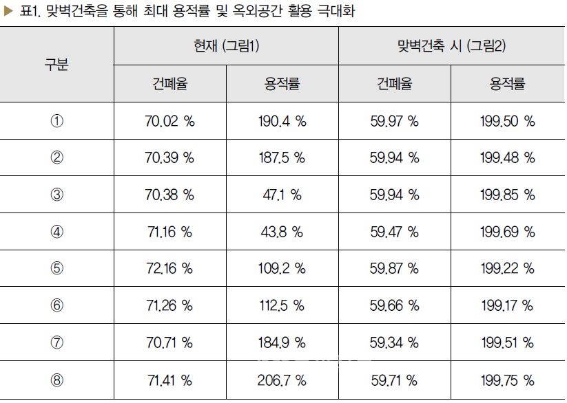 이렇게 되면 건축협정구역(2~20필지 내외) 내는 공동으로 지하층을 설치하여 주차장으로 활용할 수 있게 되며, 필지별 조경을 공동으로 설치해 주민의 휴게 공간으로도 활용이 가능하게 된다.