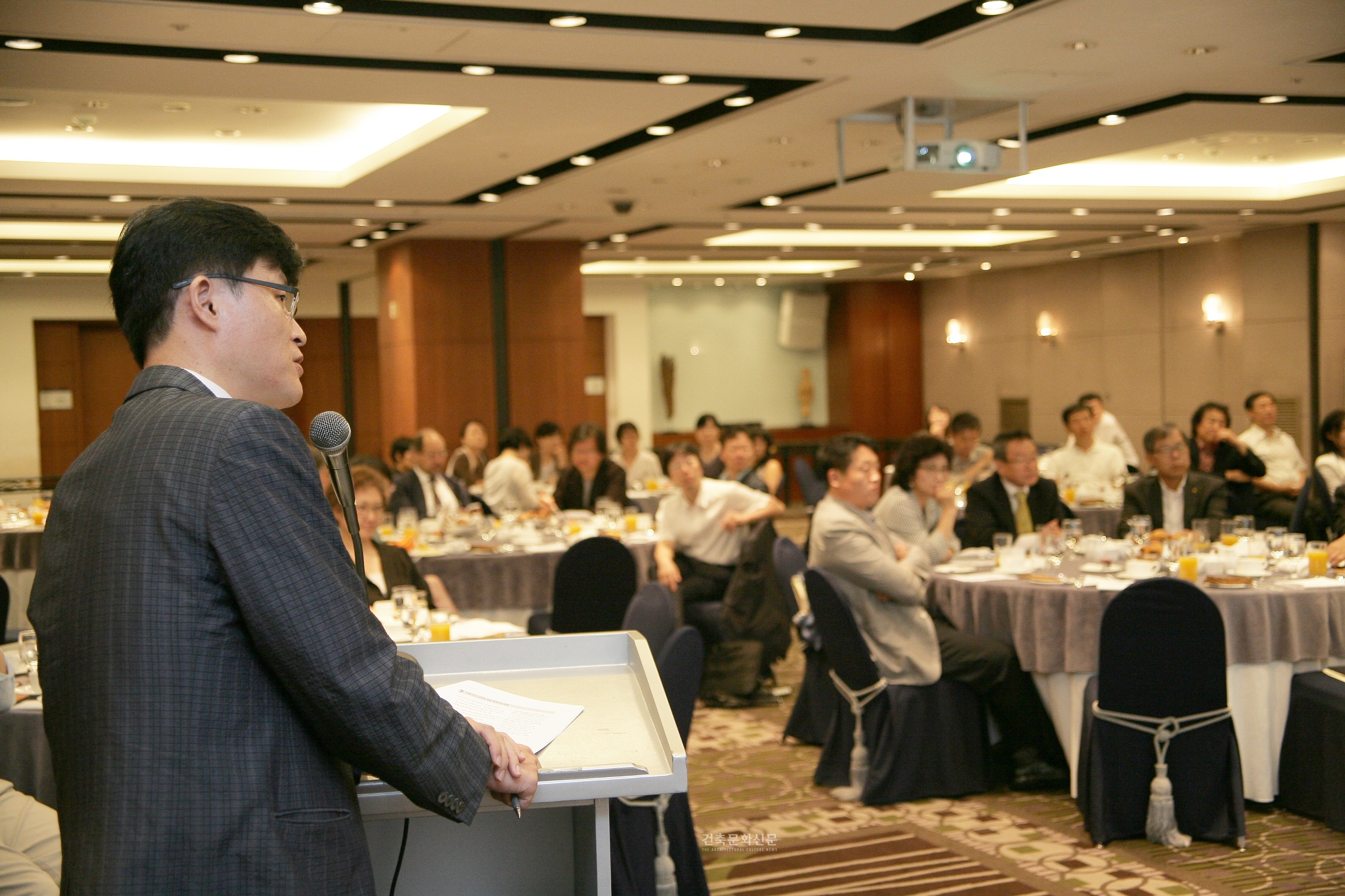 또한 건축서비스산업 진흥법(안)의 입법을 통하여 설계공모를 장려하고 신진 건축사를 발굴․육성하며, 단순 시공 수주가 아닌 ‘디자인 빌드’ 수주로의 변화 등의 변화를 목표로 하고 있음을 언급했다. 이어 유광흠 건축도시공간연구소 연구위원은 지식기반산업으로서 건축서비스산업의 인식 전환이 필요한 시기임을 언급하며, 신성장동력산업으로서 건축서비스산업 육성의 필요성을 강조했다.