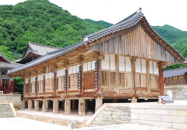 순천 선암사를 보면 교종(敎宗)과 선종(禪宗)을 아우르려고 했던 의천의 천태종 교리에 따라, 중앙에 신도들을 위한 대웅전을 두고 왼쪽에는 선종을 오른쪽에는 교종의 전각을 배치했다. 여기서도 외대문은 절집 밖에 누마루(승선루)를 두고, 절집에 들어오는 중문은 삼문이 아닌 일주문 형식으로 만들어진다. 대웅전 앞마당에는 유가계의 3층 석탑이 쌍으로 놓여 있는데, 이로 미루어 천태종도 유가계 -통일신라 특유의- 석탑을 그대로 답습하지 않았을까 추측한다. 그런데 이것이 비뚤어져 세워졌다. 얼마 전 석탑을 보수할 때, 아마도 오래 돼서 자연히 비뚤어졌거나 아니면 당시 사람들이(고려, 조선조 때 2번 보수 - 사리함의 유물로 알 수 있었다) 측량을 잘못한 것이 아닐까 의심해서 고치고자 했으나, 내가 극구 반대해서 그대로 보수했다. 이렇게 출입구를 바꾼 예는 엄청 많다. 고창 선운사나 통도사도 마찬가지이다.